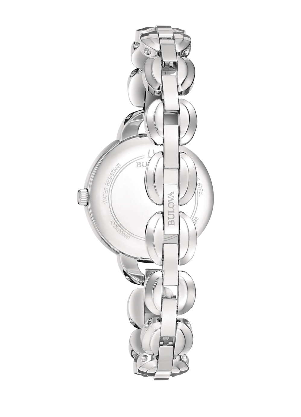 Alimentato da un affidabile movimento al quarzo di alta precisione, il 96P231 assicura un cronometraggio impeccabile. Il bracciale a maglie strette in acciaio inossidabile completa l'estetica uniforme e garantisce una vestibilità comoda e sicura.