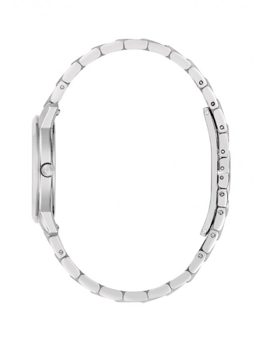 Ilquadrante biancocon indici alternati e finestra datario a ore 3 unisce semplicità e praticità, mentre ilmovimento al quarzogarantisce precisione costante e affidabilità nell’uso quotidiano. Il vetro minerale protegge il quadrante da graffi e segni d’uso, mentre il bracciale in acciaio con chiusura deployante assicura comfort e vestibilità sicura.