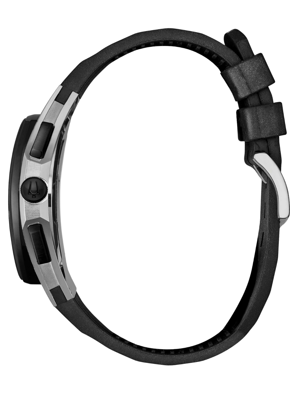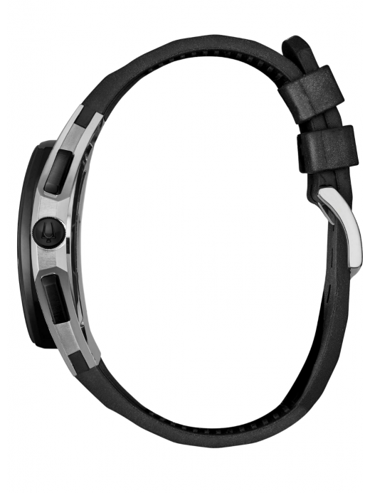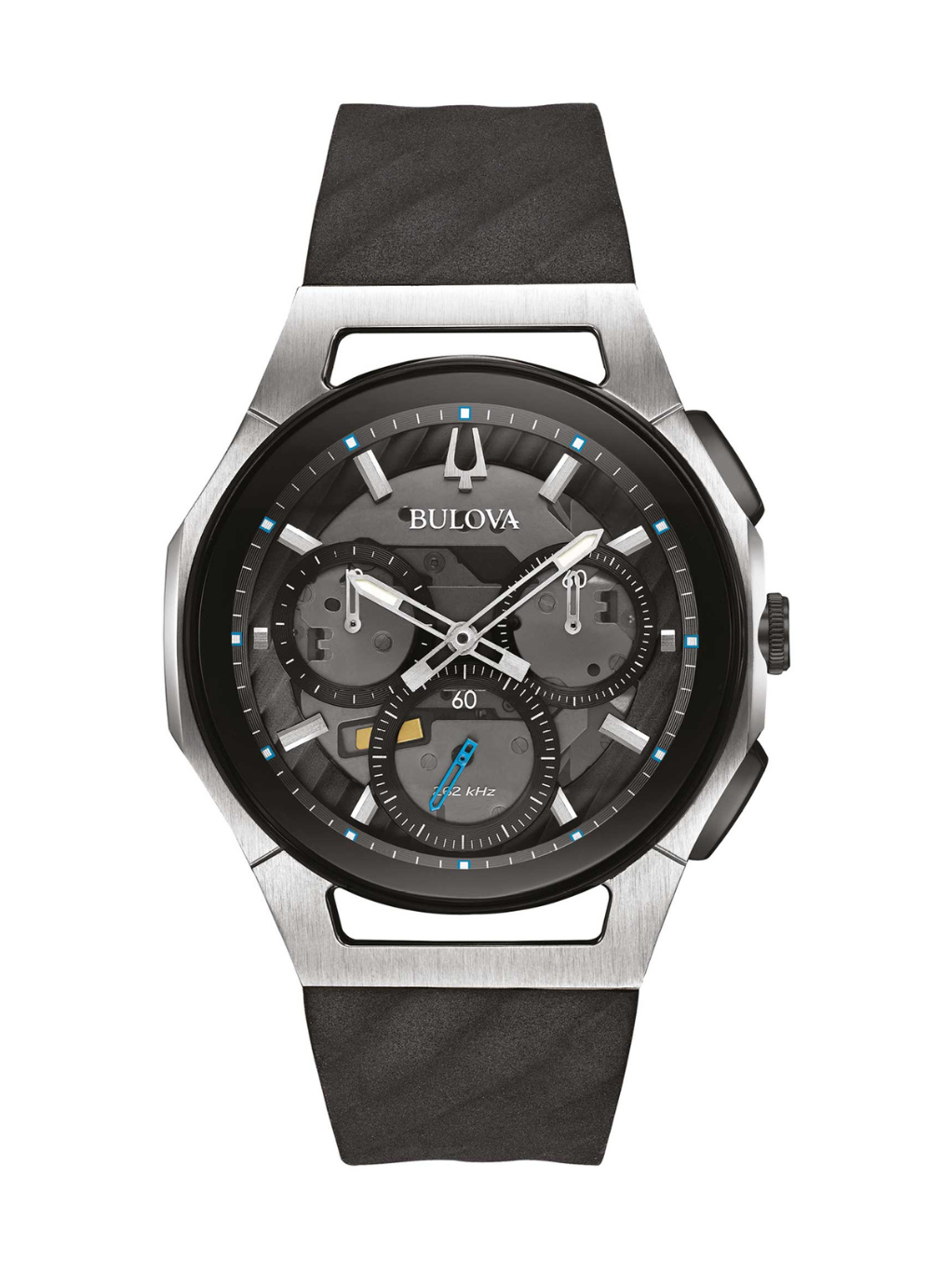 Il Bulova Curv Progressive (Ref. 98A161) è l'apice dell'innovazione Bulova, essendo l'unico cronografo al mondo con movimento al quarzo interamente curvo. La cassa da 44 mm in acciaio garantisce una vestibilità ergonomica superiore.