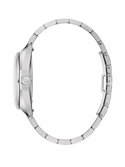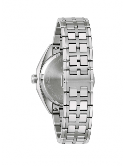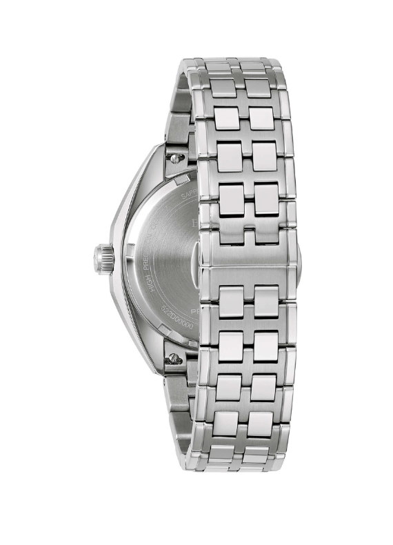 Il segnatempo è animato dal movimentoPrecisionist ad alta precisione, tecnologia proprietaria Bulova che utilizza un cristallo al quarzo a262 kHz, garantendo una precisione superiore rispetto ai tradizionali movimenti al quarzo e una lancetta dei secondi con scorrimento fluido. Ilvetro zaffiro bombatoprotegge il quadrante mentre ilbracciale in acciaio con chiusura deployanteassicura comfort e solidità.