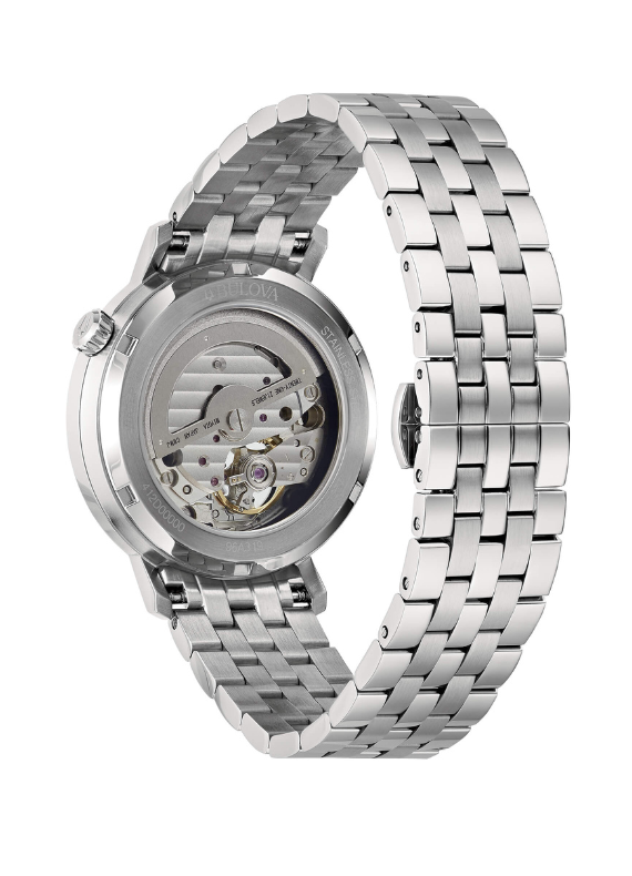 All’interno lavora unmovimento automatico Miyota 8215 a 21 rubini, visibile attraverso il fondello trasparente, che offre una riserva di carica di circa 40 ore. Il bracciale in acciaio con chiusura deployante completa un orologio versatile, ideale sia per l’uso quotidiano sia per contesti più eleganti.