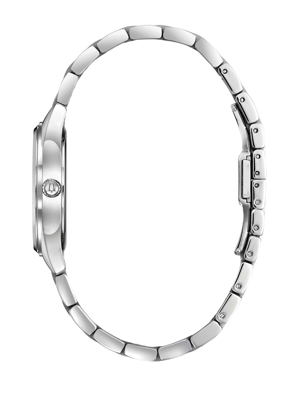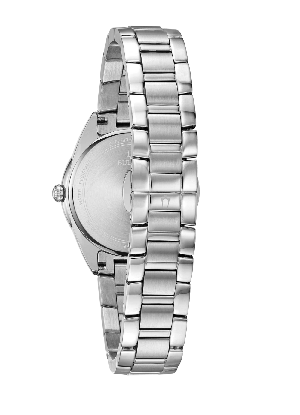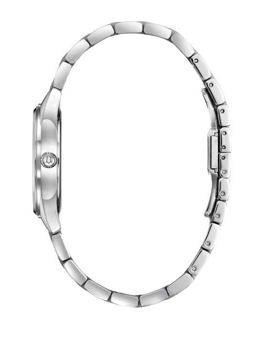 La cassa da 32 mm in acciaio inossidabile ha una forma rotonda classica. Alimentato da un affidabile movimento al quarzo, il 96P198 è pensato per una donna che desidera precisione e bellezza. Il bracciale a maglie in acciaio inossidabile completa l'estetica uniforme e garantisce un comfort eccezionale. Il vetro minerale bombato aggiunge un tocco vintage, proteggendo il quadrante con eleganza.