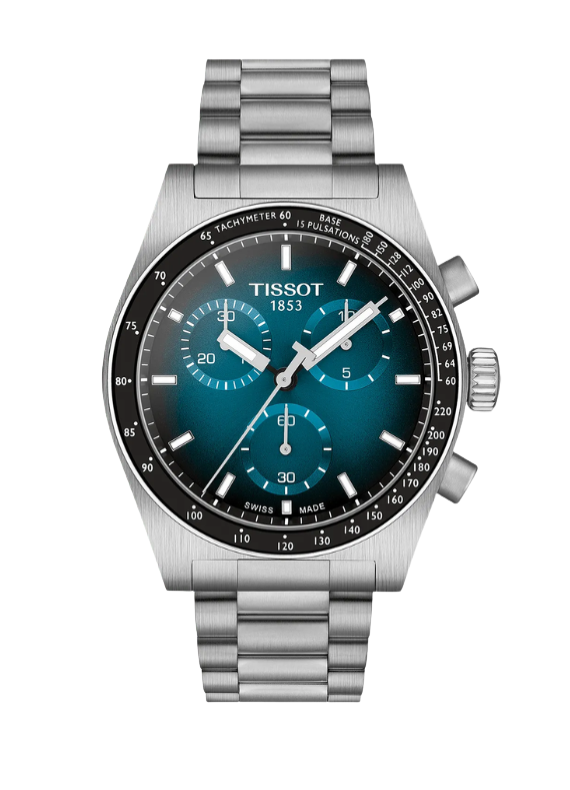 Il Tissot PR516 Quartz Chronograph T1494171104101 è un tributo contemporaneo alla leggendaria serie PR516 del 1970, un'icona del mondo dei motori. Questa versione si presenta con un magnetico quadrante blu e contatori cronografici argento, offrendo un equilibrio perfetto tra sportività dinamica ed eleganza classica. La cassa da 40 mm in acciaio inossidabile ospita una lunetta dettagliata con scala tachimetrica e pulsometrica, ideale per chi vive il tempo con precisione e passione per la velocità.