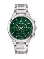 La cassa da 44 mm in acciaio inossidabile si fonde armoniosamente con il robusto bracciale in metallo, creando un look coeso e moderno. L'elemento distintivo è il sofisticato quadrante verde, che ospita le funzioni di cronografo ed è protetto dal superiore vetro zaffiro curvato antigraffio.
