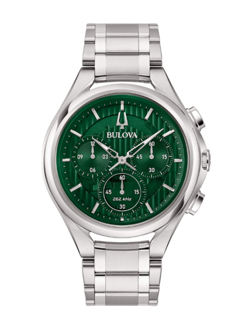 Eleva il tuo stile con il Bulova Curv Cronografo da Uomo (referenza 96A297), un orologio che combina la tecnologia rivoluzionaria con un'estetica di grande tendenza. Il Bulova Curv è l'unico al mondo con un movimento cronografico al quarzo interamente curvo, garantendo un comfort ergonomico eccezionale.