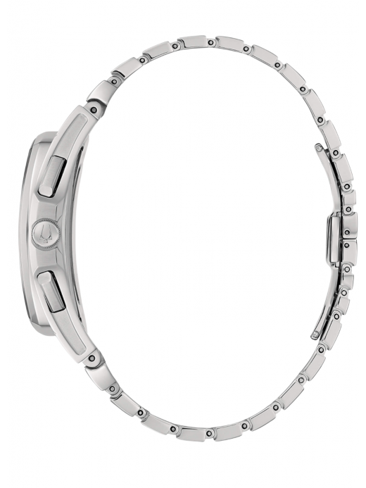 Scopri la collezione Curv di Bulova, pioniera a livello mondiale con il primo movimento cronografico curvo. Questo orologio da uomo, codice 96A257, è progettato per unire una perfetta ergonomia a una precisione tecnica senza pari, adattandosi in modo impeccabile alla forma del polso.