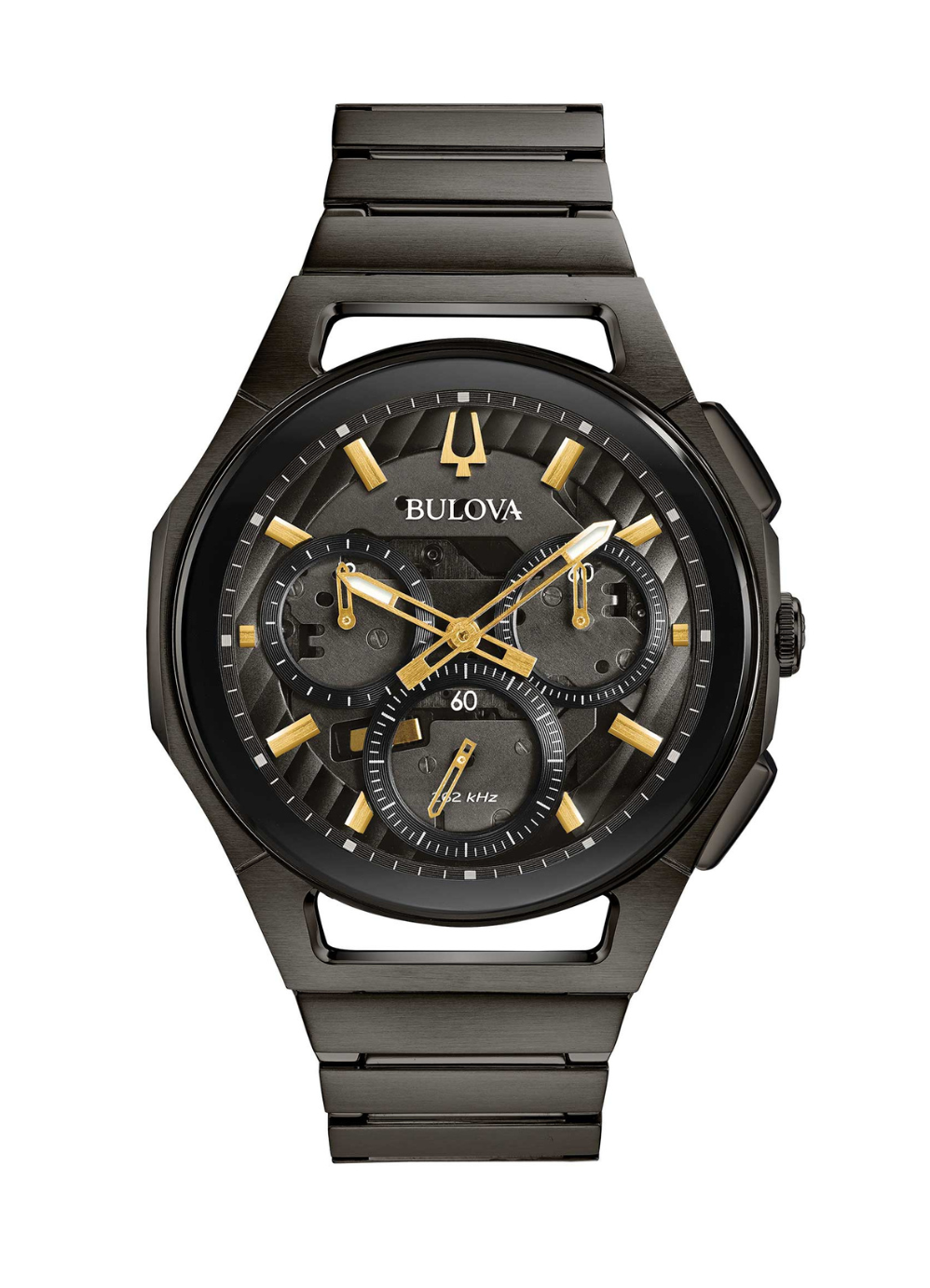 Il Bulova Curv Progressive Cronografo da Uomo (referenza 98A206) unisce l'innovazione rivoluzionaria con un'estetica potente e sportiva. Questo orologio, l'unico al mondo con movimento cronografico al quarzo interamente curvo, offre un comfort superiore e una precisione ineguagliabile (262 kHz).