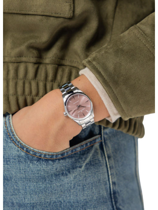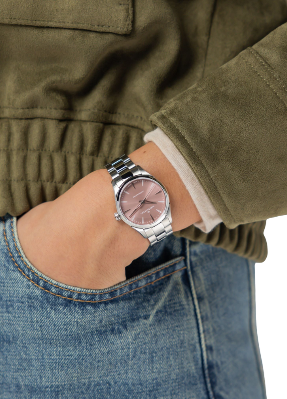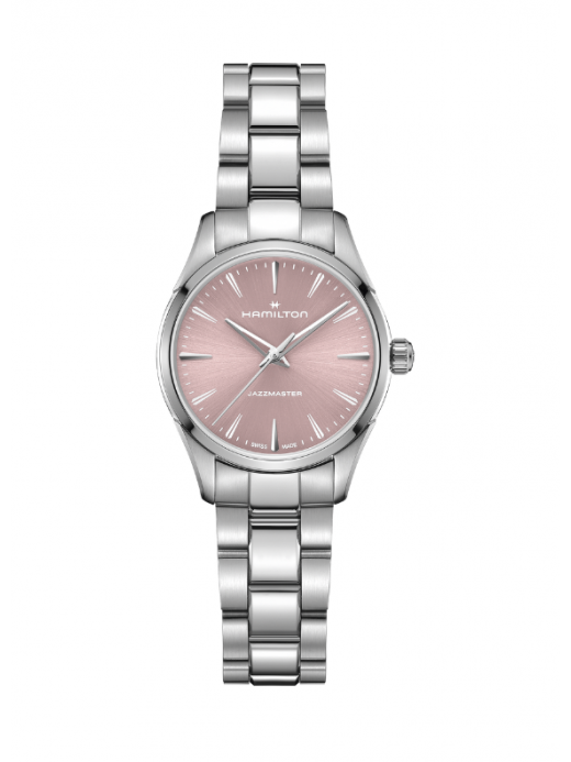 Il Jazzmaster Quartz 32 mm incanta con il suo quadrante rosa cipria, la cui finitura soleil spazzolata dona una luminosità morbida e ricercata. La cassa ultrasottile, rifinita con cura artigianale tra superfici lucide e satinate, incornicia le lancette “dauphine” scheletrate, simbolo di un’eleganza che sa rinnovarsi. Un segnatempo che fonde una delicata energia vitale a un design dal fascino eterno.