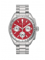 Il bracciale in acciaio inossidabile con finiture lucide e satinate si integra perfettamente alla cassa. Il quadrante rosso è accoppiato a una scala tachimetrica a stampa nera e indici rivestiti di Super-LumiNova® per una leggibilità ottimale. Il vetro zaffiro convesso antiriflesso protegge il quadrante con eleganza e durabilità, mentre il fondello a vite commemorativo aggiunge un ulteriore strato di appeal per i collezionisti.