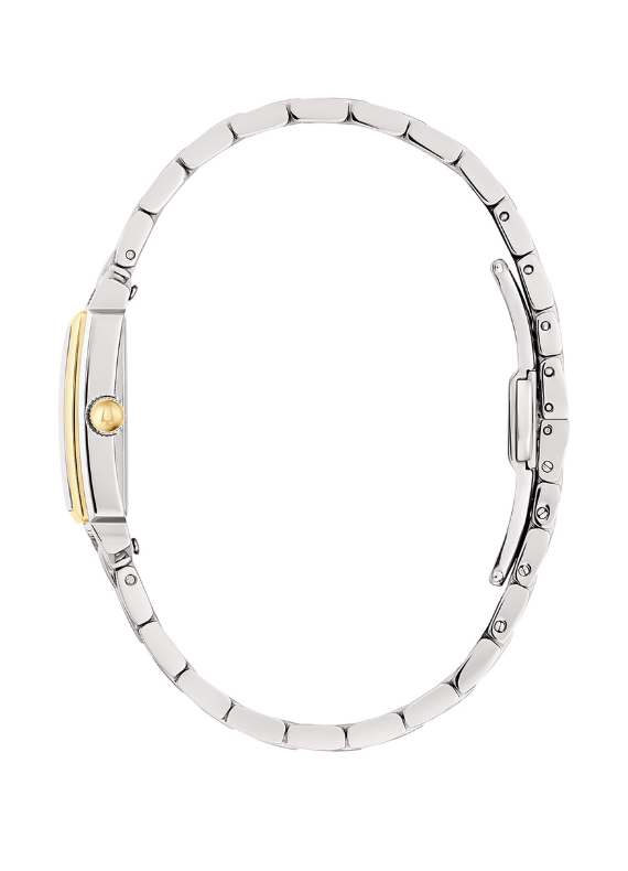 IlBulova Sutton Tank 98P220è un inno alla raffinatezza geometrica e allo stile senza tempo. Questo segnatempo si distingue per la sua iconica cassa rettangolare in acciaio inossidabile con finiture bicolore (silver e oro), che evoca un'eleganza d'altri tempi reinterpretata per la donna moderna.
