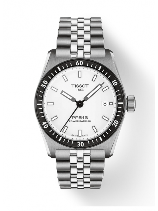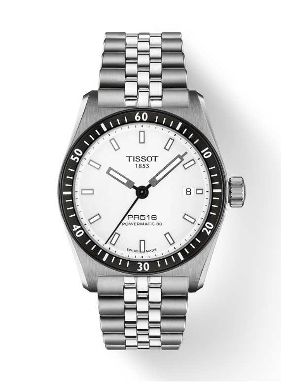 Il Tissot PR516 Powermatic 80 nella sua declinazione con quadrante argento incarna la quintessenza dell'orologeria sportiva d'ispirazione automobilistica. Questa versione eleva il design originale del 1970 con una luminosità straordinaria: il quadrante argenté, protetto da un vetro zaffiro di alta qualità, crea un contrasto netto e sportivo con le lancette arancioni e gli indici neri, garantendo una leggibilità immediata in ogni situazione.