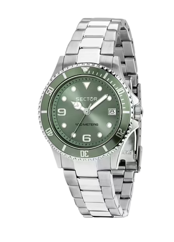 Il Sector 230 R3253161550 è un orologio solo tempo da donna della collezione 230 caratterizzato da un design moderno e versatile. Dotato di movimento al quarzo analogico, offre indicazione di ore, minuti e datario in modo chiaro e affidabile. La cassa in acciaio inox da 35 mm e il bracciale in acciaio silver con chiusura diver dotata di blocco di sicurezza assicurano robustezza e comfort quotidiano. Il quadrante verde acqua conferisce un tocco distintivo e femminile al segnatempo, protetto da vetro minerale resistente. Con resistenza all’acqua fino a 10 ATM (100 m / 330 ft) è adatto anche a condizioni di umidità e attività leggere con acqua. Ideale per completare lo stile di tutti i giorni con eleganza sportiva