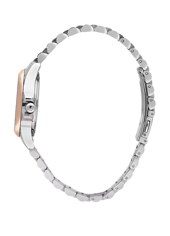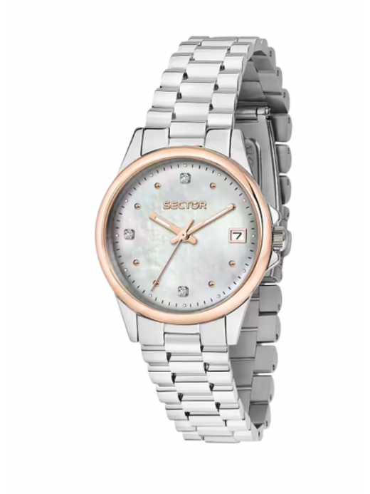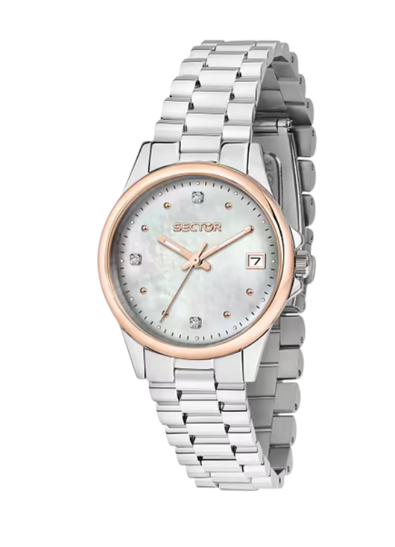 Il Sector 230 R3253161540 è un elegante orologio solo tempo da donna della collezione Sector 230, pensato per chi cerca un segnatempo quotidiano con stile raffinato. Dotato di movimento al quarzo analogico Miyota 2115, visualizza ore, minuti e datario con estrema precisione. La cassa in acciaio inox da 32 mm con lunetta placcata oro rosa incornicia un quadrante in madreperla con dettagli cristallo che conferiscono luminosità e femminilità. Il bracciale in acciaio silver con chiusura deployante con pulsanti garantisce robustezza e comfort. Il vetro è minerale, resistente ai graffi quotidiani, mentre la resistenza all’acqua fino a 10 ATM (100 m / 330 ft) lo rende adatto anche a situazioni di umidità o spruzzi d’acqua leggeri. Questo segnatempo è ideale per accompagnare con eleganza ogni momento della giornata.