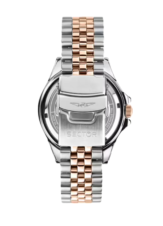 Il Sector 230 R3223161014 è un elegante orologio automatico da uomo della collezione 230, con movimento meccanico a carica automatica e datario. La cassa in acciaio inox da 43 mm presenta finiture bicolore oro rosa e argento, che conferiscono un aspetto raffinato ma sportivo. Il quadrante nero con indici ben leggibili offre un contrasto visivo deciso, mentre il vetro minerale con trattamento zaffiro garantisce resistenza ai graffi. Con resistenza all’acqua fino a 10 ATM, questo segnatempo è ideale per l’uso quotidiano e attività acquatiche leggere. Perfetto per chi ricerca design moderno, funzionamento affidabile e stile sofisticato.