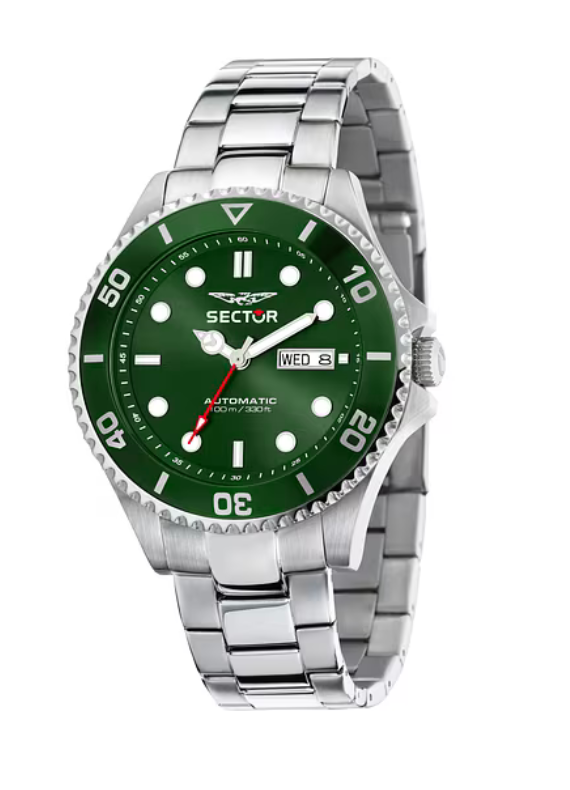 Orologio Sector 230 R3223161020 con movimento automatico di precisione, ideale per l’uomo moderno che ricerca affidabilità sportiva e stile deciso. Cassa in acciaio da 43 mm con finitura lucida e satinata, quadrante verde intenso e bracciale in acciaio con chiusura diver sicura. Resistente all’acqua fino a 10 ATM, perfetto per l’uso quotidiano e attività acquatiche leggere. Quadrante leggibile con datario e design sportivo distintivo.