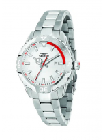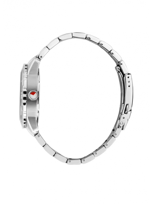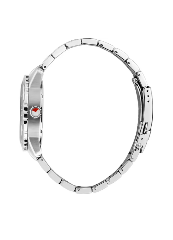 La cassa da 43 mm e il bracciale sono interamente realizzati in acciaio inossidabile, garantendo un look solido e una notevole durabilità nel tempo. Il cuore dell'orologio è un preciso movimento al quarzo che gestisce l'indicazione dell'ora e della data (posizionata a ore 3).