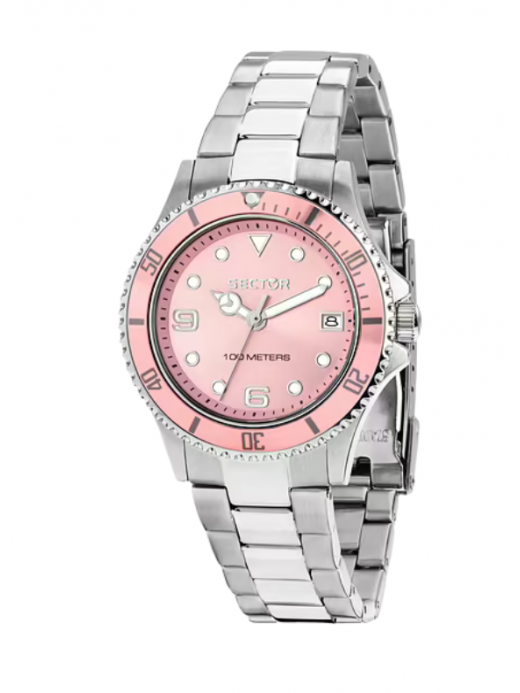 Il Sector 230 R3253161551 è un orologio solo tempo da donna della celebre collezione 230, pensato per chi cerca eleganza quotidiana con un tocco di colore femminile. Dotato di movimento al quarzo analogico preciso, offre visualizzazione delle ore, minuti e datario con leggibilità immediata. La cassa in acciaio inox da 35 mm è abbinata a un bracciale in acciaio silver con chiusura diver e blocco di sicurezza per comfort e stabilità al polso. Il quadrante rosa conferisce uno stile raffinato e moderno, protetto da vetro minerale resistente a graffi e urti. Con resistenza all’acqua fino a 10 ATM (100 m / 330 ft) è adatto all’uso quotidiano anche in condizioni di umidità. Questo segnatempo unisce design femminile e affidabilità tecnica.
