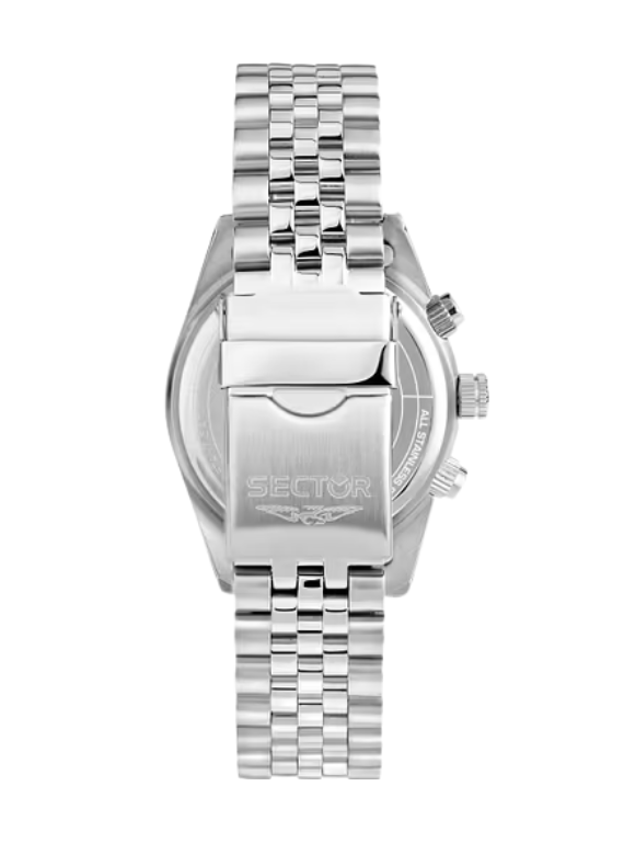 Il Sector 240 R3273640001 è un cronografo da uomo della collezione 240, dal design sportivo e moderno, pensato per chi ama un segnatempo funzionale e affidabile. Dotato di movimento al quarzo analogico con cronografo e datario, garantisce precisione e praticità nell’uso quotidiano. La cassa in acciaio inox da 41 mm con finitura lucida racchiude un elegante quadrante nero con contatori ben leggibili e datario tra le ore 4 e le ore 5. Il bracciale in acciaio inox silver con chiusura deployante con blocco di sicurezza assicura comfort e stabilità al polso. Il vetro minerale resistente protegge il quadrante dai graffi. Con resistenza all’acqua fino a 5 ATM (50 m / 165 ft) è ideale per l’uso quotidiano e condizioni di umidità.