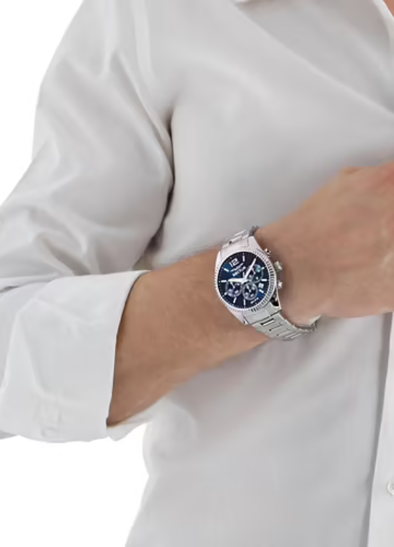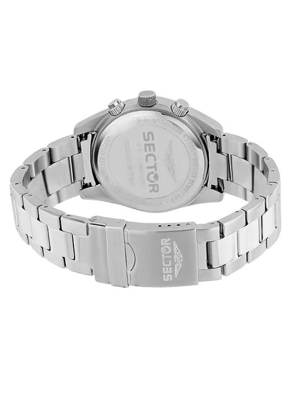 Il Sector 240 R3273676004 è un cronografo da uomo della collezione Sector 240, che unisce design sportivo ed eleganza funzionale. Dotato di movimento al quarzo preciso con funzioni di cronografo a tre contatori e datario, è ideale per la vita quotidiana dinamica. La cassa in acciaio inox da circa 41 mm e il bracciale in acciaio argentato con chiusura deployante e fermaglio di sicurezza garantiscono robustezza e comfort. Il quadrante blu sunray con indici a bastone luminescenti offre leggibilità immediata, protetto da vetro minerale resistente ai graffi. Con resistenza all’acqua fino a 5 ATM (50 m) è perfetto per l’uso quotidiano e condizioni di umidità. Un segnatempo moderno, tecnico e versatile per l’uomo attivo.