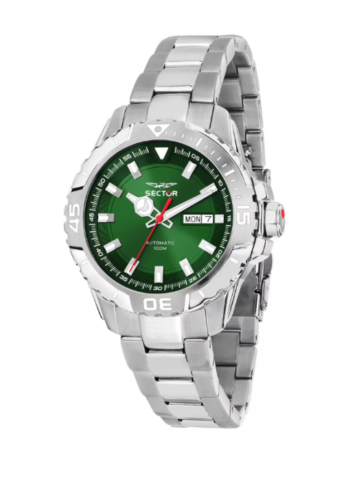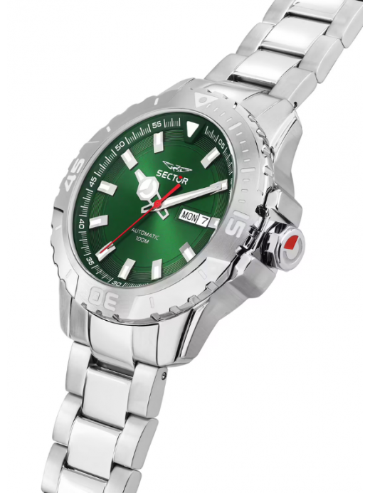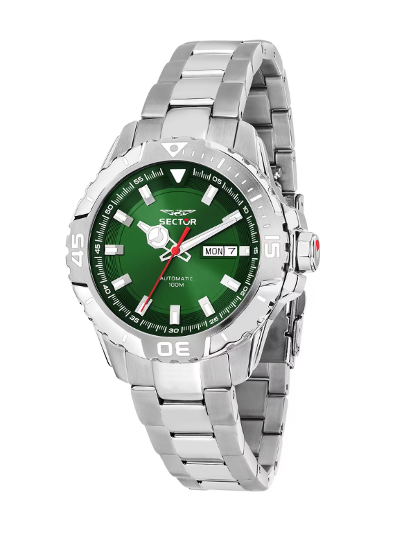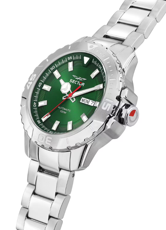 Il Sector Legend R3223135006 è un orologio automatico da uomo appartenente alla collezione Legend. Con cassa in acciaio inossidabile finitura lucida, diametro di 43 mm e spessore di 14,05 mm, questo modello combina stile deciso e precisione di movimento. Il vetro è in cristallo minerale, il bracciale in acciaio è dotato di chiusura tipo diver con pulsanti e blocco di sicurezza. Impermeabile fino a 10 atm.
