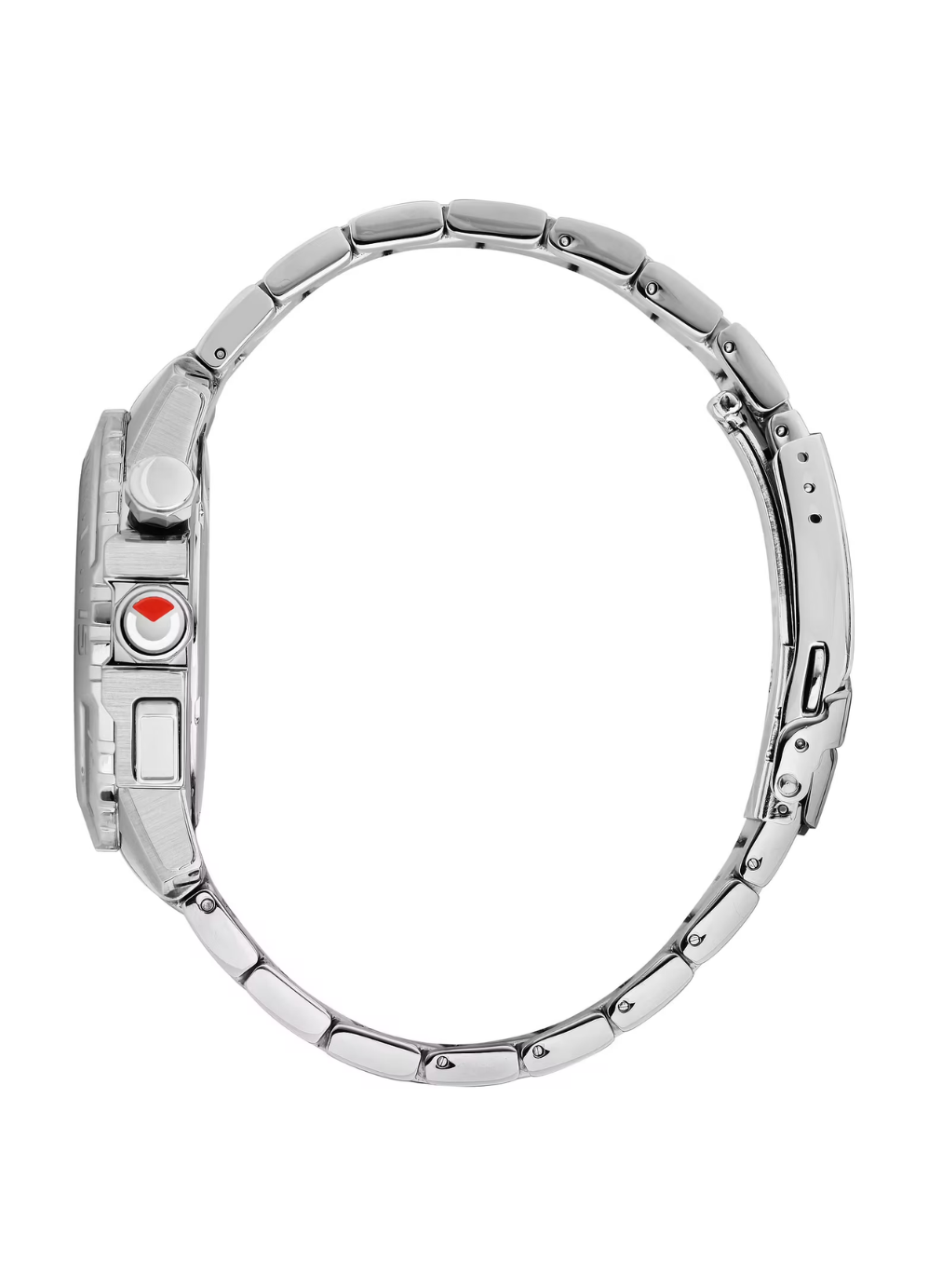 Il magnifico quadrante blu profondo è protetto da un vetro minerale resistente e vanta la funzione cronografo, essenziale per chi vive la vita al massimo. Il bracciale in acciaio inossidabile assicura una vestibilità solida e confortevole, ideale per l'uso quotidiano o per le tue avventure.