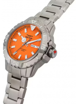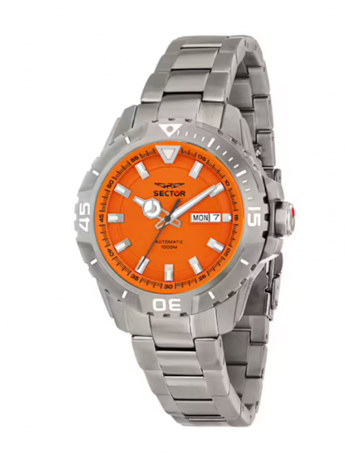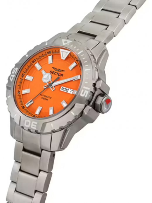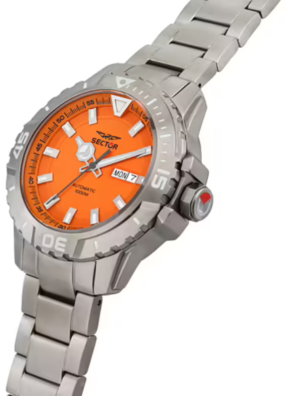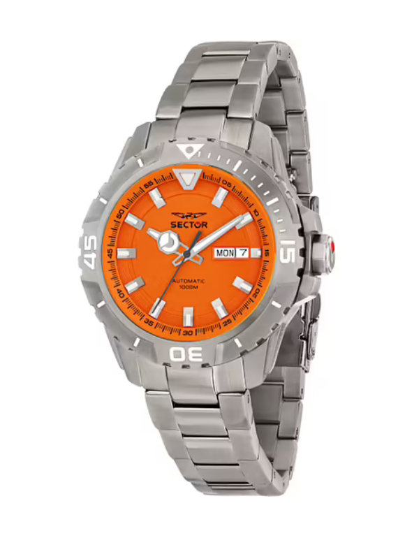 Il Sector Legend R3223135005 è un orologio automatico da uomo dallo spirito sportivo e robusto, pensato per chi richiede stile e resistenza. La cassa in titanio da circa 43 mm e il quadrante arancione intenso rendono questo segnatempo un vero protagonista al polso. Il vetro zaffiro garantisce chiarezza e protezione, mentre la costruzione metallica leggera ne assicura comfort anche nelle condizioni più impegnative. Con una resistenza all’acqua estremamente elevata (fino a 100 atm / 1000 metri secondo alcune fonti), è pensato per chi ama viverlo pienamente — dal quotidiano all’avventura. Il movimento automatico, l’ansa generosa e il bracciale/titanio conferiscono un look deciso e dinamico. Un orologio che unisce design, performance e impatto visivo.