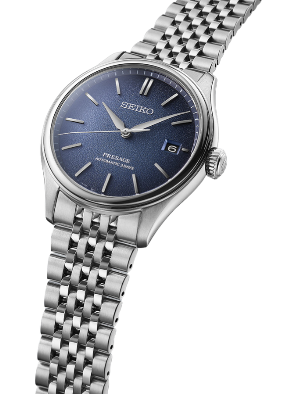 Il Seiko Presage SPB525J1 è un orologio automatico da uomo della prestigiosa collezione Presage Classic Series, caratterizzato da una raffinata estetica ispirata al colore giapponese Ai-iro (indaco). Monta un movimento Seiko calibro 6R55 con riserva di carica di circa 72 ore e finiture di alta qualità che combinano precisione meccanica e design elegante. La cassa in acciaio inox 40,2 mm con vetro zaffiro a doppia curvatura e quadrante blu profondo crea un perfetto equilibrio tra stile classico e contemporaneo. Resistente fino a 10 Bar (100 m), è adatto a un uso quotidiano affidabile e raffinato.