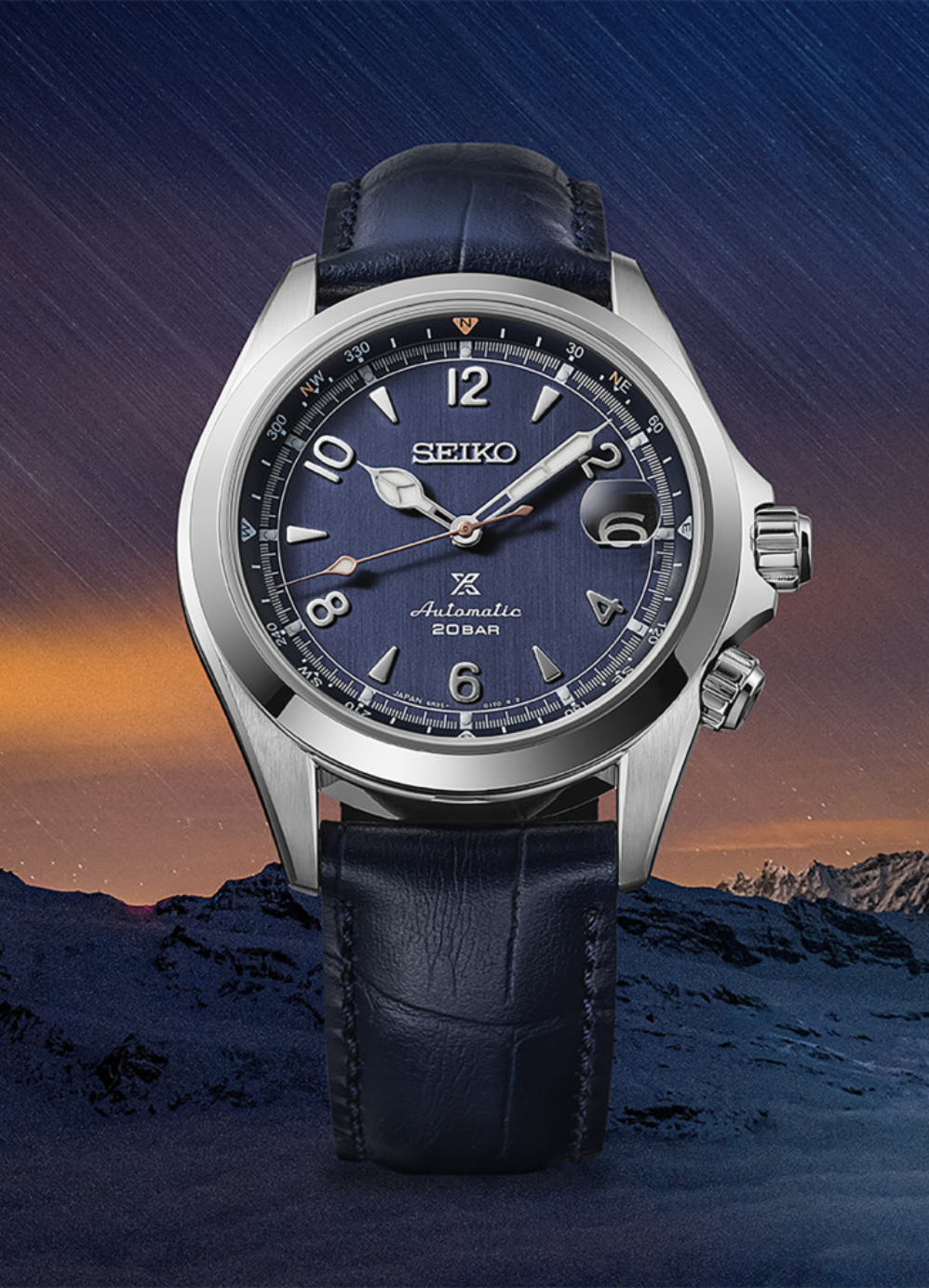 Il Seiko Prospex Alpinist GMT SPB531J1 è un'inedita Edizione Limitata Europea che rende omaggio al primo orologio sportivo Seiko del 1959, reinterpretato per gli esploratori moderni. Il tema cromatico si ispira al cielo notturno limpido sopra il maestoso Monte Cervino.