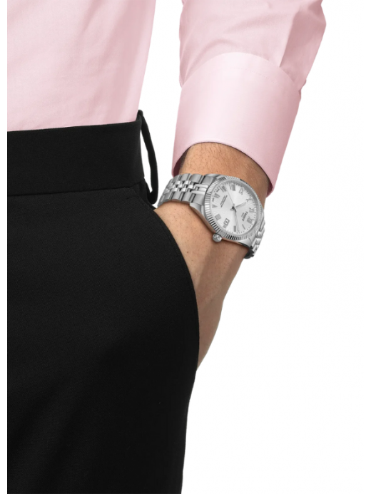 Il Tissot Ballade COSC T156.408.11.033.00 è un orologio automatico di classe con certificazione cronometro (COSC), pensato per chi cerca precisione e raffinatezza. La cassa in acciaio 316L da 39 mm ospita un movimento Powermatic 80 dotato di spirale Nivachron, con riserva di carica fino a 80 ore. Il vetro è zaffiro con doppio trattamento antiriflesso, proteggendo un quadrante silver con indicatori romani e finestrella data. Il fondello è a vista (see-through), per ammirare la meccanica interna. Il modello offre resistenza all’acqua fino a 10 bar (100 metri / ~330 piedi), ideale per uso quotidiano incluso nuoto leggero. Il bracciale in acciaio è intercambiabile con sistema quick release. Design elegante e prestazioni certificate in un equilibrio perfetto tra stile e affidabilità.