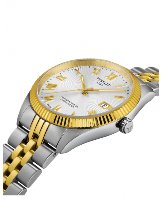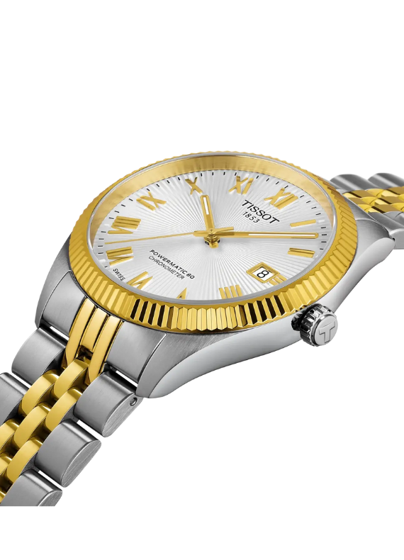 Il Tissot Ballade COSC T156.408.22.033.00 è un orologio automatico elegante e raffinato, progettato per chi pretende precisione certificata e stile sofisticato. Dotato del movimento Powermatic 80 con spirale Nivachron, offre una riserva di carica fino a 80 ore e la certificazione COSC (cronometro ufficiale). La cassa in acciaio 316L è completata da un rivestimento PVD oro giallo e da una ghiera scanalata che aggiunge carattere. Il quadrante silver con indici romani e lancette luminescenti è protetto da vetro zaffiro con trattamento antiriflesso su entrambi i lati. Il fondello è trasparente (“see-through”) per ammirare la meccanica interna. Il bracciale in acciaio con sistema quick-release permette facili cambi di cinturino. Con resistenza all’acqua fino a 10 bar (100 metri / 330 piedi), è adatto per uso quotidiano, compresi brevi momenti di nuoto o immersioni leggere.