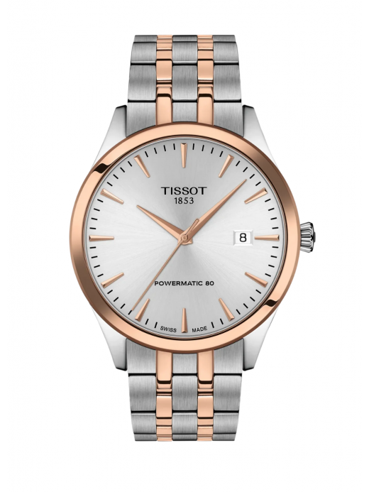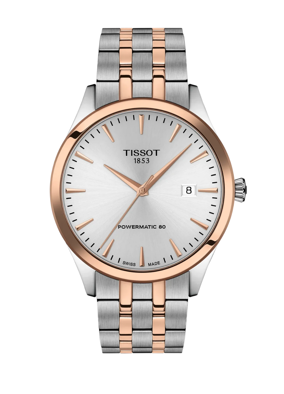l'apice dell'eleganza classica Tissot. Questo segnatempo Swiss Made è un omaggio alla tradizione orologiera, arricchito da un fascino bicolore che non passa inosservato.