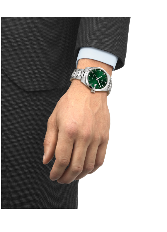Il Tissot Gentleman si reinventa con una cassa da 38 mm che ne esalta l'ergonomia e lo stile senza tempo. La vera star è il quadrante verde, una scelta di carattere che sposa perfettamente sia l'abito formale da ufficio che un look rilassato per il weekend. Animato dal calibro Powermatic 80 con spirale amagnetica Nivachron™, non è solo un accessorio, ma un compagno affidabile per l'uomo moderno. Grazie allo sgancio rapido del bracciale in acciaio, cambiare stile non è mai stato così semplice.