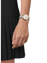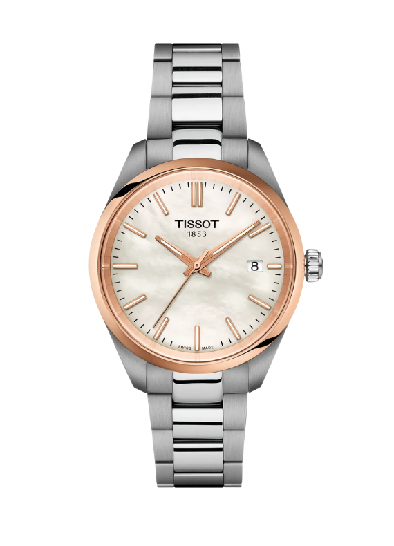 Il Tissot PR 100 Quartz T150.210.21.111.00 è un elegante orologio da donna dalla personalità discreta e raffinata. Dotato di cassa in acciaio 316L da 34 mm con finitura PVD oro rosa, questo modello combina robustezza e femminilità. Il quadrante in madreperla bianca impreziosito da indici applicati, assieme al movimento al quarzo svizzero con indicatore EOL, garantisce precisione e praticità. Il vetro è zaffiro antigraffio e l’orologio è resistente all’acqua fino a 10 ATM (100 metri / ~330 piedi). Il bracciale in acciaio con sistema quick-release facilita la sostituzione del cinturino. Un orologio perfetto per chi cerca eleganza quotidiana con prestazioni affidabili.