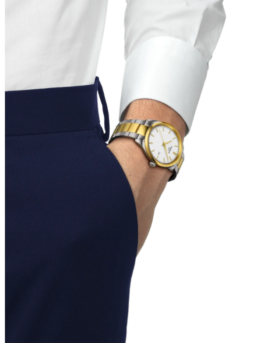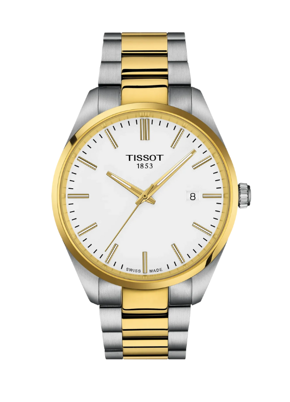 Il Tissot PR 100 Quartz T150.410.22.011.00 è un orologio da uomo elegante e sobrio, perfetto per uso quotidiano e occasioni formali. Presenta una cassa in acciaio 316L da 40 mm con finitura PVD oro giallo sulla ghiera, quadrante bianco con indici applicati, e un bracciale in acciaio bicolore abbinato (acciaio + PVD oro). Il vetro è zaffiro antigraffio, mentre il movimento è un preciso quarzo svizzero con funzione EOL (End-Of-Life) per segnalare l’esaurimento della batteria. Resistendo all’acqua fino a 10 ATM (100 metri / ~330 piedi), è adatto ad affrontare pioggia, docce e attività acquatiche leggere. Una scelta di classe per chi desidera un orologio senza complicazioni, elegante e affidabile.
