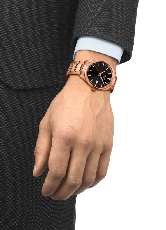 Il Tissot PR 100 Quartz T150.410.33.051.00 unisce eleganza e robustezza: con cassa in acciaio 316L rivestita in PVD oro rosa, diametro 40 mm, e bracciale abbinato intercambiabile, questo segnatempo è pensato per l'uomo moderno che ama un design raffinato senza rinunciare all'affidabilità. Il movimento è quarzo svizzero con funzione EOL (End-of-Life) che segnala la fine della batteria. Il vetro è zaffiro antigraffio, mentre l’impermeabilità è garantita fino a 10 ATM (100 metri / ~330 piedi). Il quadrante nero, con lancette e indici trattati in Super-LumiNova, offre leggibilità anche in condizioni di scarsa luce. Ideale per chi cerca un orologio da indossare ogni giorno, elegante ma resistente.