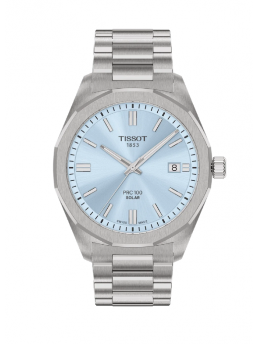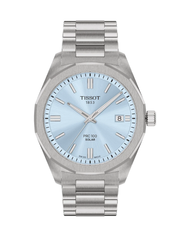 Il Tissot PRC 100 Solar 39 mm combina design sportivo ed eleganza contemporanea con la praticità della tecnologia a ricarica solare. Grazie al movimento al quarzo solare, l’orologio sfrutta la luce per alimentarsi, riducendo la necessità di manutenzione e offrendo un utilizzo estremamente pratico.
