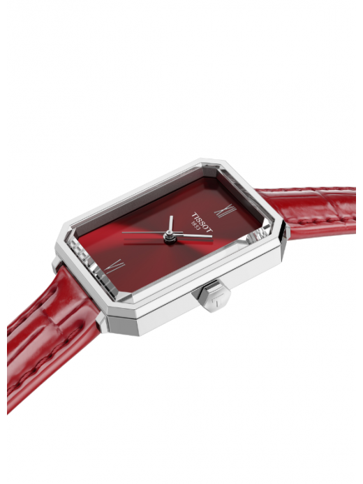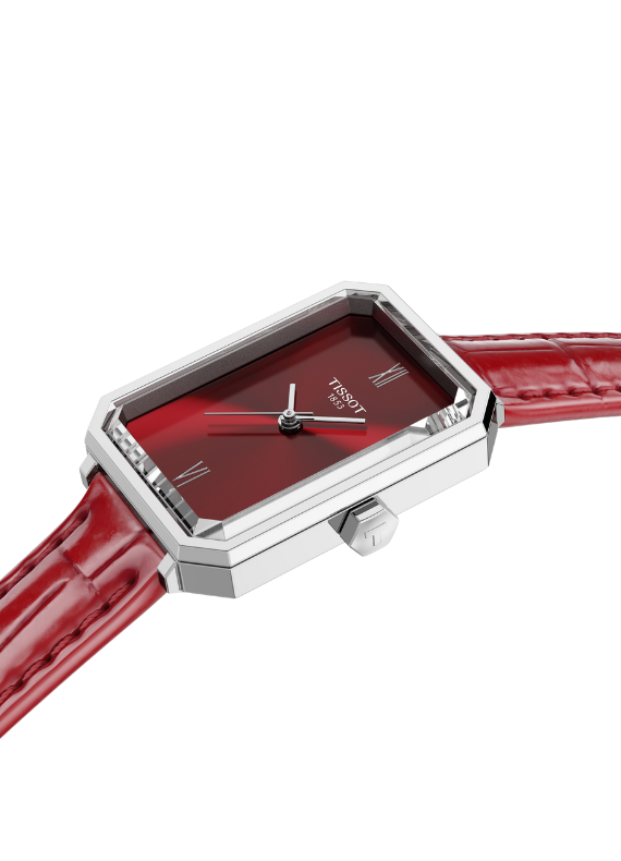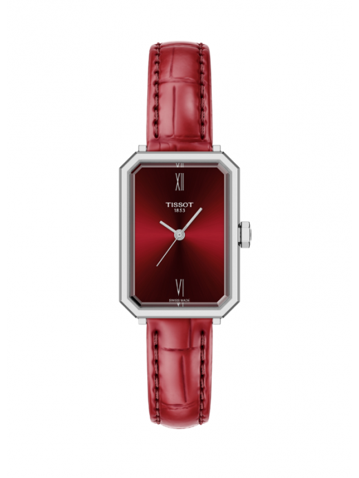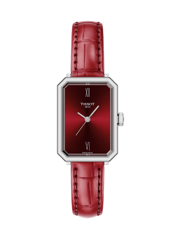 Il Tissot SRV T160.110.16.423.00 è un orologio elegante dal carattere deciso, pensato per la donna moderna che ama un tocco di colore. Realizzato in acciaio inossidabile 316L con cassa rettangolare dalle dimensioni 30 × 21,8 mm e spessore 7,25 mm monta un movimento al quarzo svizzero con indicatore End-Of-Life, che segnala il momento della sostituzione della batteria . Il quadrante rosso sunburst è protetto da un vetro zaffiro sfaccettato, che richiama un design gioiello e aggiunge luminosità e eleganza. Il cinturino è in pelle (rosso), dotato di sistema quick-release per facilitare la sostituzione senza attrezzi. Questo modello offre una resistenza all’acqua fino a 5 bar (≈ 50 metri / ≈ 165 piedi), adatta all’uso quotidiano e protegge da spruzzi o pioggia leggera