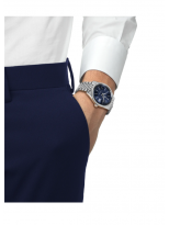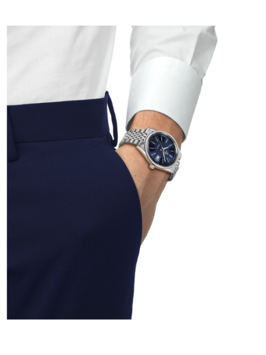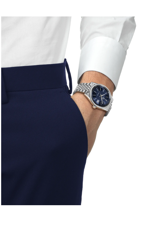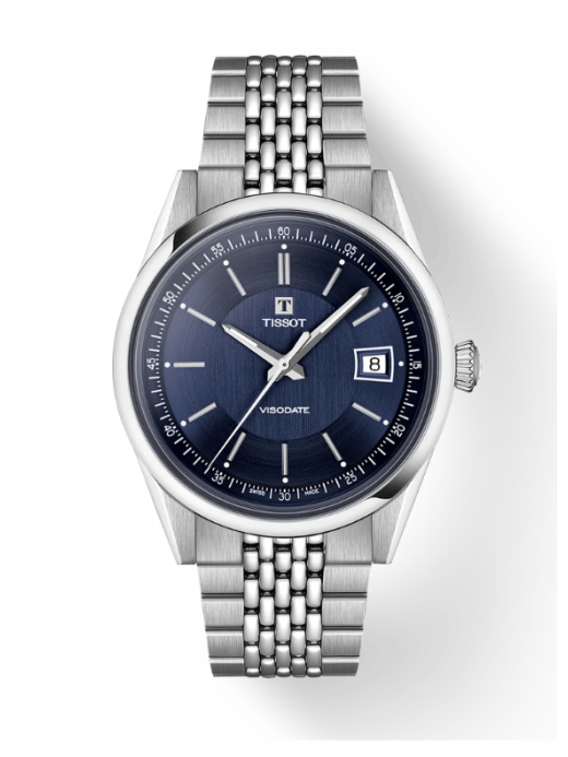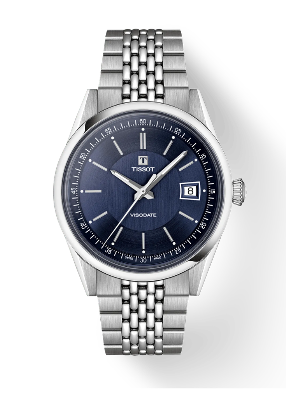 Il Tissot Visodate torna in una nuova versione con cassa da 39 mm. Questo orologio rappresenta una raffinata evoluzione della sua storica eredità: un segnatempo affidabile e autentico, pensato per accompagnare i momenti della vita quotidiana con lo stesso carattere distintivo che lo contraddistingue da generazioni. Il fondello trasparente permette di ammirare la meccanica del movimento automatico Powermatic 80, che garantisce fino a 80 ore di riserva di carica. Le lancette Dauphine con rivestimento Super-LumiNova® assicurano una lettura dell’ora chiara anche in condizioni di scarsa illuminazione. Scopri questa versione con quadrante blu intenso, completata da un bracciale in acciaio inox “grani di riso” con sistema di sgancio rapido, che dona all’orologio uno stile moderno ed elegante.