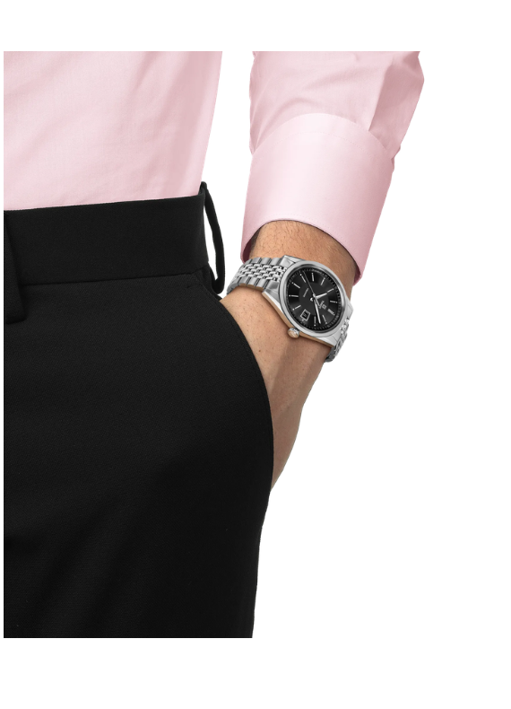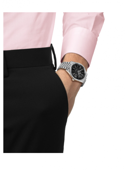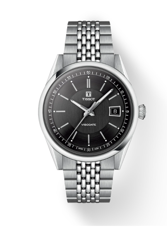 Il Tissot Visodate torna in una nuova versione con cassa da 39 mm. Questo modello rappresenta una naturale evoluzione della sua tradizione: un orologio automatico affidabile e senza tempo, progettato per accompagnare la quotidianità con lo stesso spirito autentico che lo ha reso iconico nel corso delle generazioni. Il fondello a vista rivela la raffinata meccanica del movimento automatico Powermatic 80, che offre fino a 80 ore di autonomia. Le lancette Dauphine con trattamento Super-LumiNova® garantiscono un’ottima leggibilità anche in ambienti poco illuminati. Scopri questa versione con quadrante nero, abbinata a un bracciale in acciaio inox “grani di riso” con sgancio rapido, per uno stile pulito, contemporaneo ed elegante.