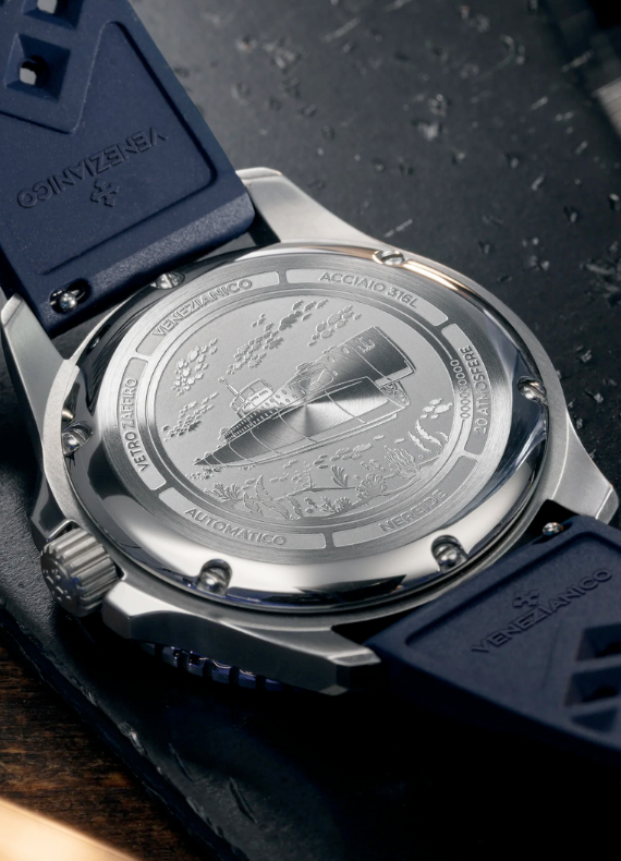 La Nereide Avventurina deve il suo nome all'omonimo vetro veneziano del XVII secolo, celebre per le sue microinclusioni metalliche aghiformi che evocano i bagliori delle stelle nel cielo notturno. La cassa da 10,65 mm è impreziosita da una lunetta in tungsteno, materiale noto per la sua eccezionale resistenza e inscalfibilità. Il design compatto, unito al cinturino Tropic in gomma FKM, assicura un'ergonomia impeccabile e un comfort ottimale in ogni occasione.