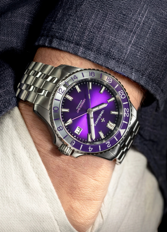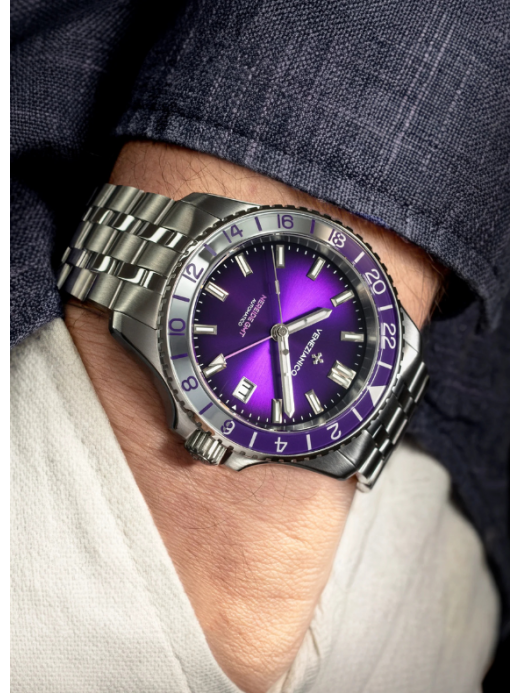 Ispirato alle grandi rotte transoceaniche di inizio Novecento, questo segnatempo ne reinterpreta l’estetica e la funzione: cromie delle antiche mappe nautiche e una costruzione pensata per il movimento. La configurazione True GMT permette di aggiornare l’ora locale con immediatezza, mantenendo sempre il riferimento di partenza.